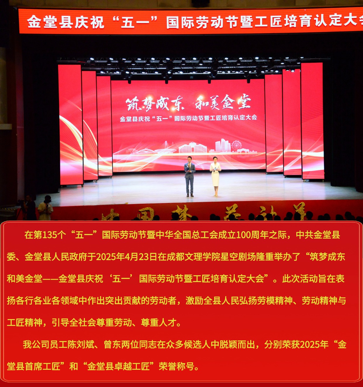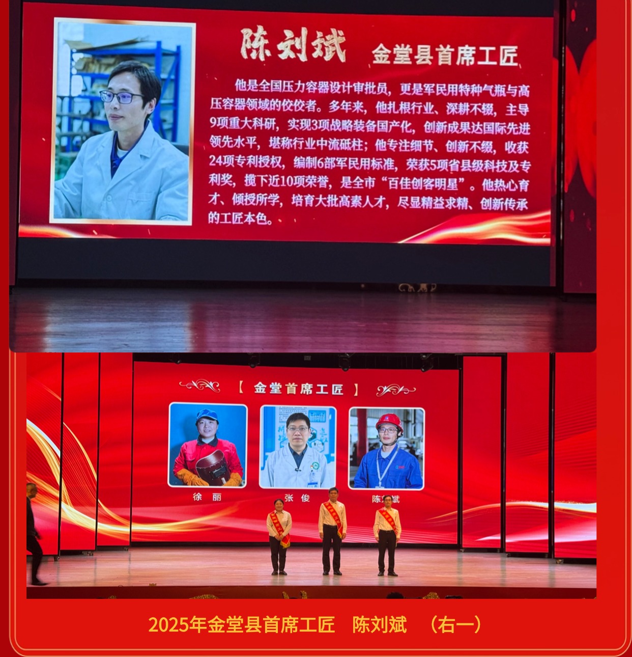 喜報(bào) | 我公司員工榮獲“2025年金堂縣首席工匠”和“卓越工匠
